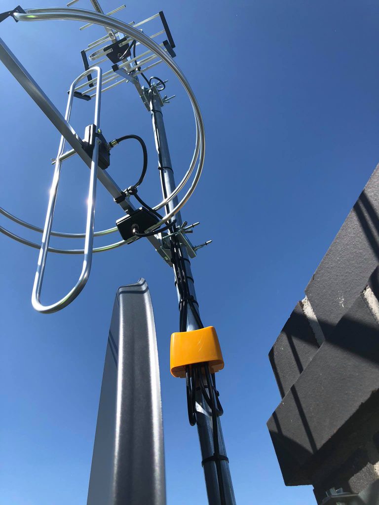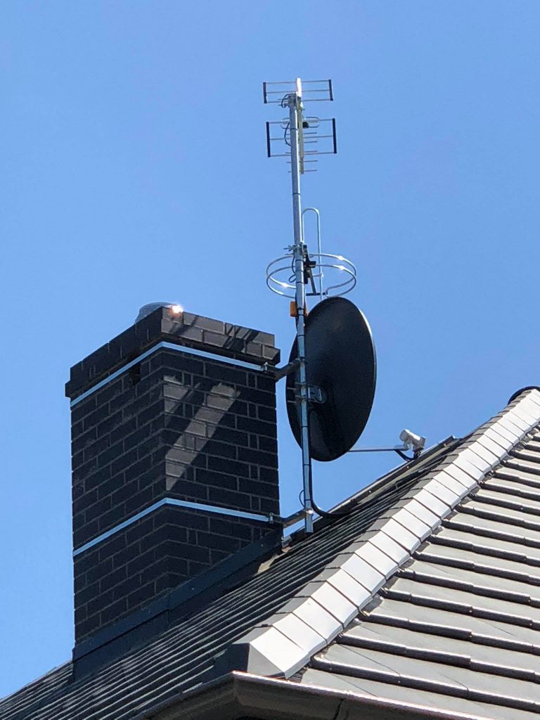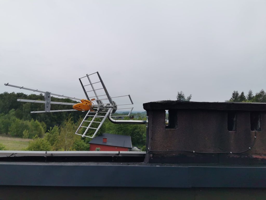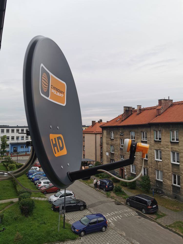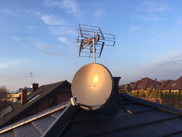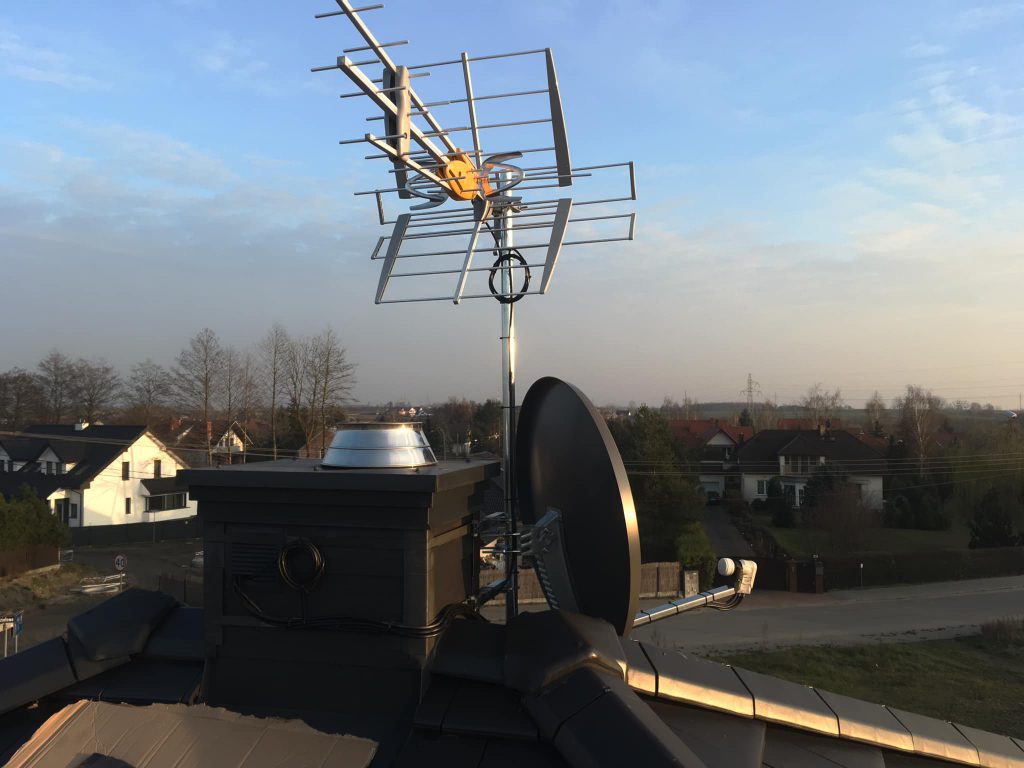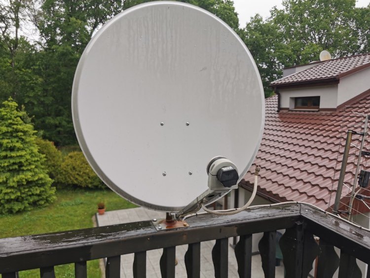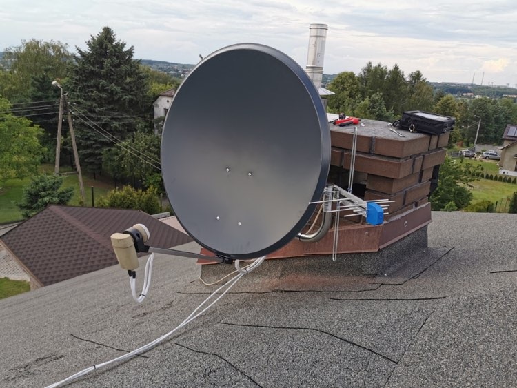 Instalacja anteny satelitarnej w domu jednorodzinnym.